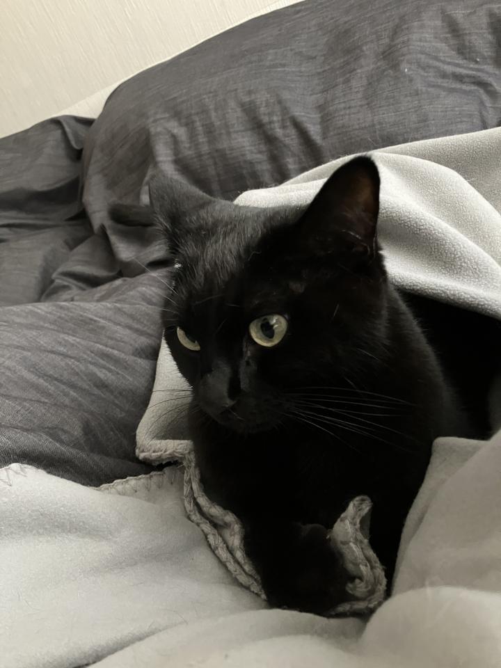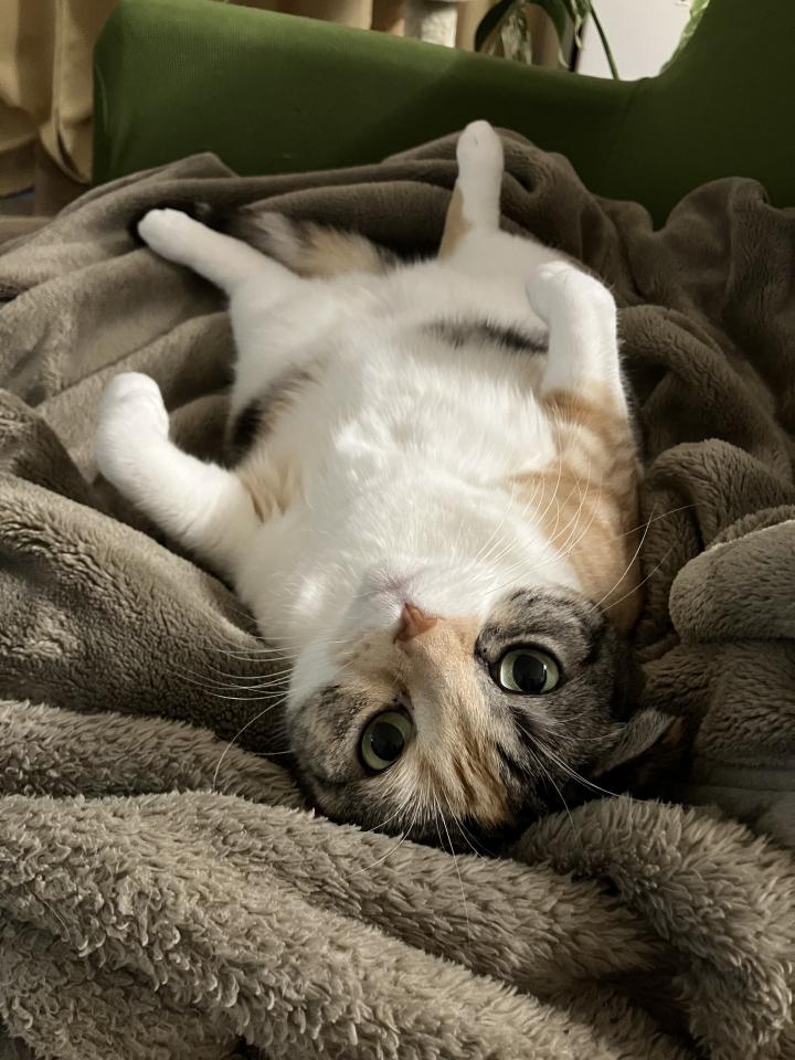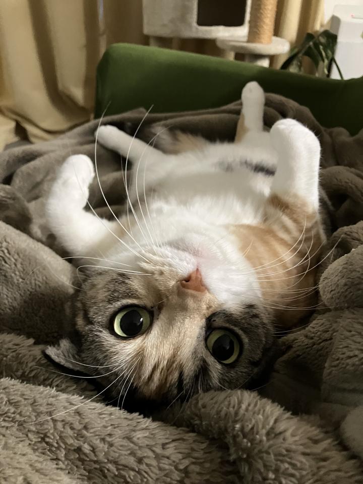 飼い主♀寝室へ向かうと🛏️甘々モードで、お腹フミフミしてくれてます(笑)