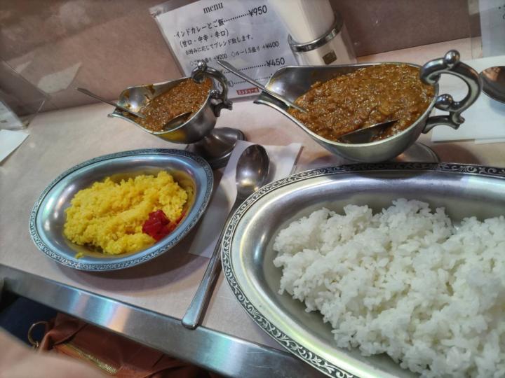 わたしはターメリックライスで甘口カレー、相方は白ライスで中辛カレー