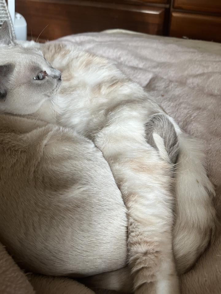 ガッツリとシャミにおしっぽを絡ませてるの💕