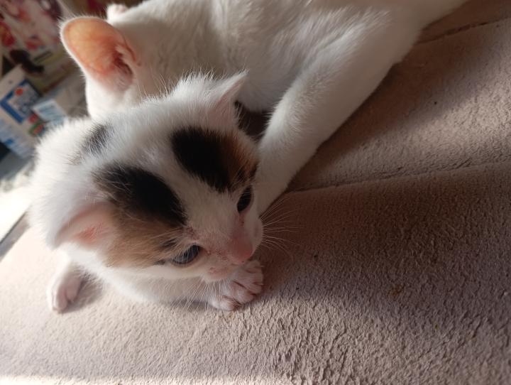 11月4日に産まれたばかりの雄の子猫ちゃんです。メルさんにお手入れされてます。