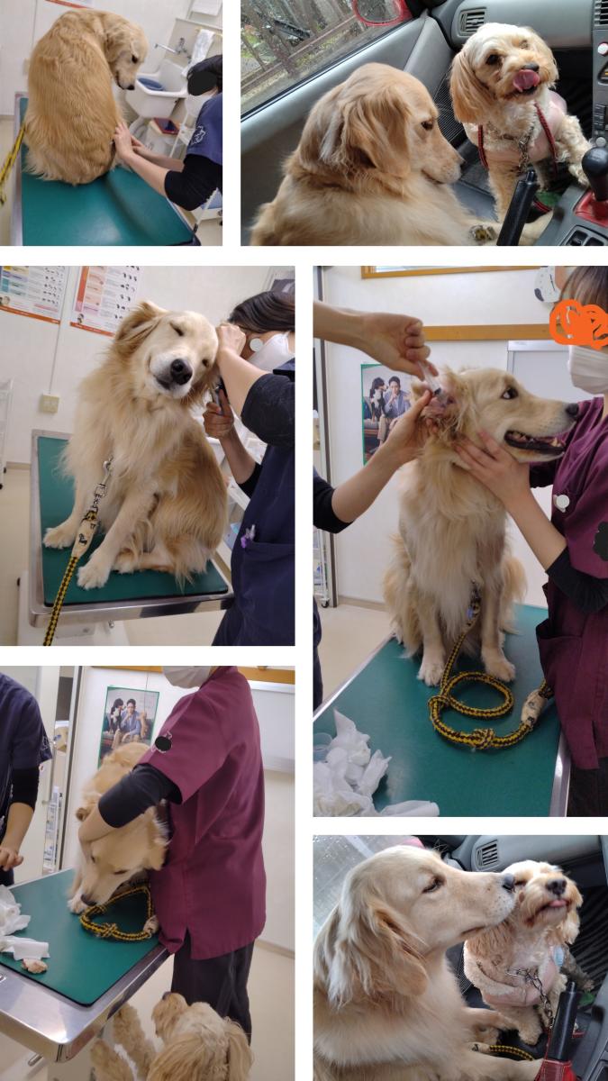 狂犬病ワクチンを打ってもらって 耳の治療を受ける ぴ🐶と、付き添い小🐶