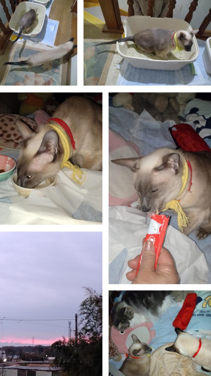 血液検査、点滴、敵便(指でカチカチの運ウン✨かき出してもらってる)