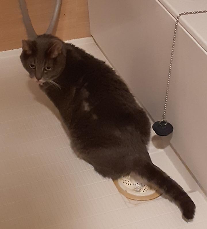毎朝のトイレはココと決めたようで、朝ごはん食べる→ナデナデを要求→水を飲む→トイレする→水を流させる がルーティンになりました。