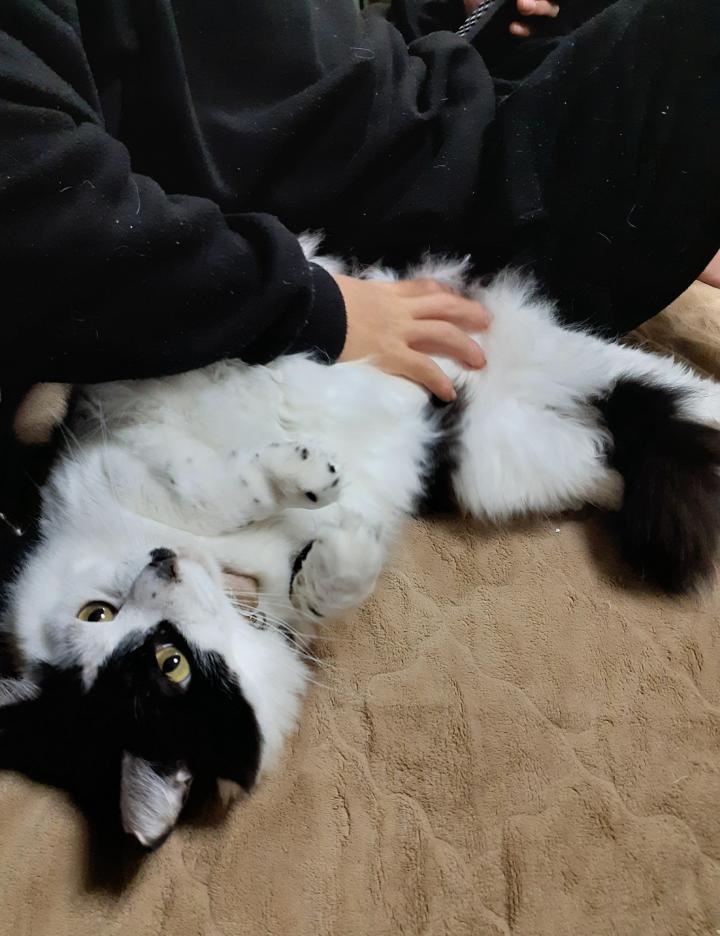 抱っこも少しの間はノドを鳴らして喜んでます。かまってほしくてワオワオ言うし、3にんの中で一番おしゃべりです。ツンデレですが。