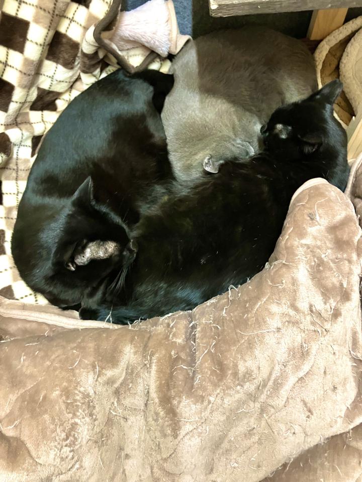 リキが優しくフニャ〜フニャーとガラス越しに声をかける。まるで仲間を心配しているような声。私に「ママ開けてあげて。」とリキ。