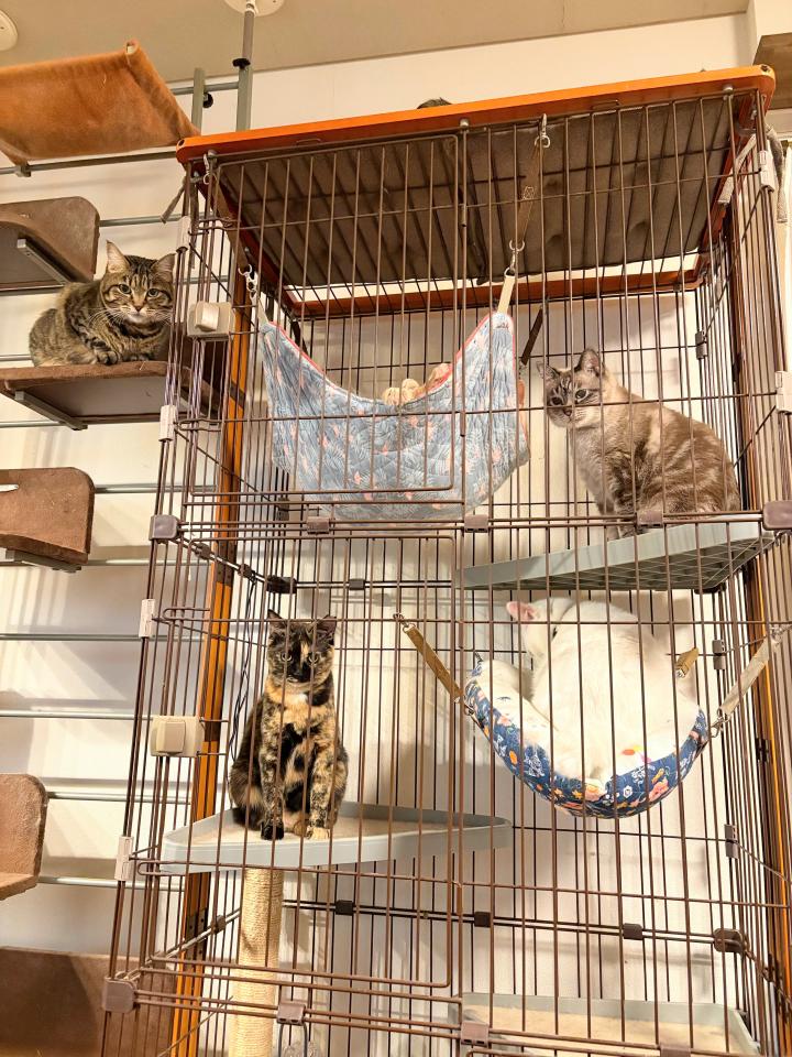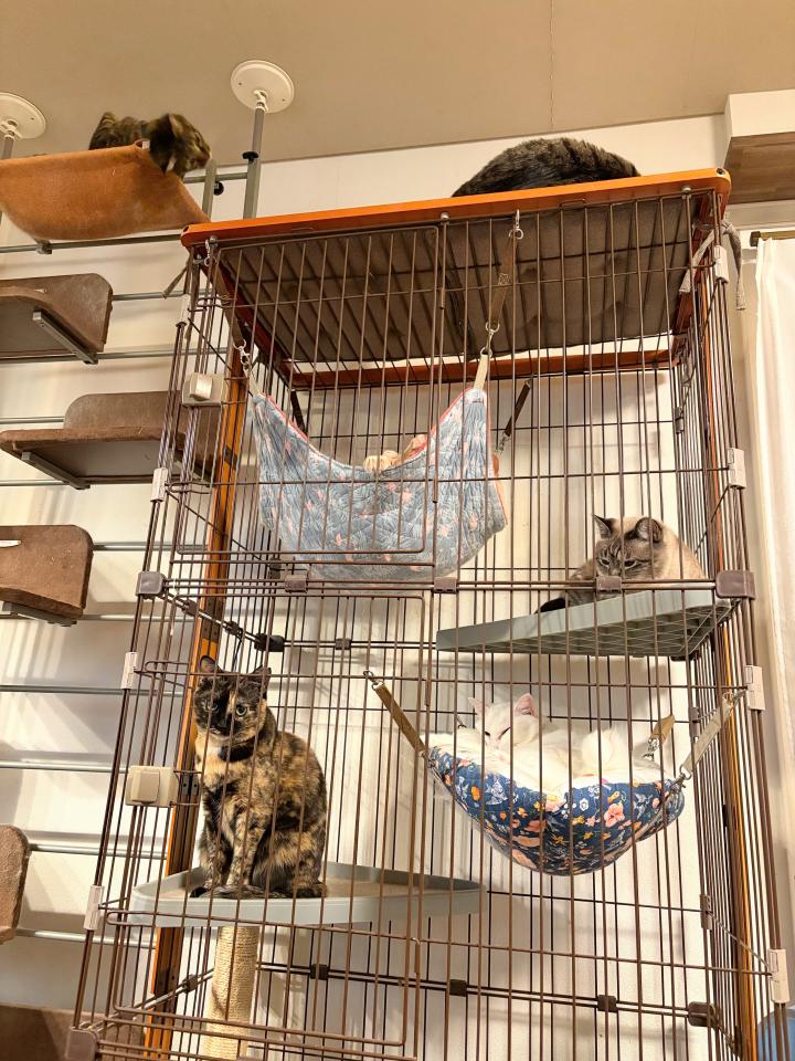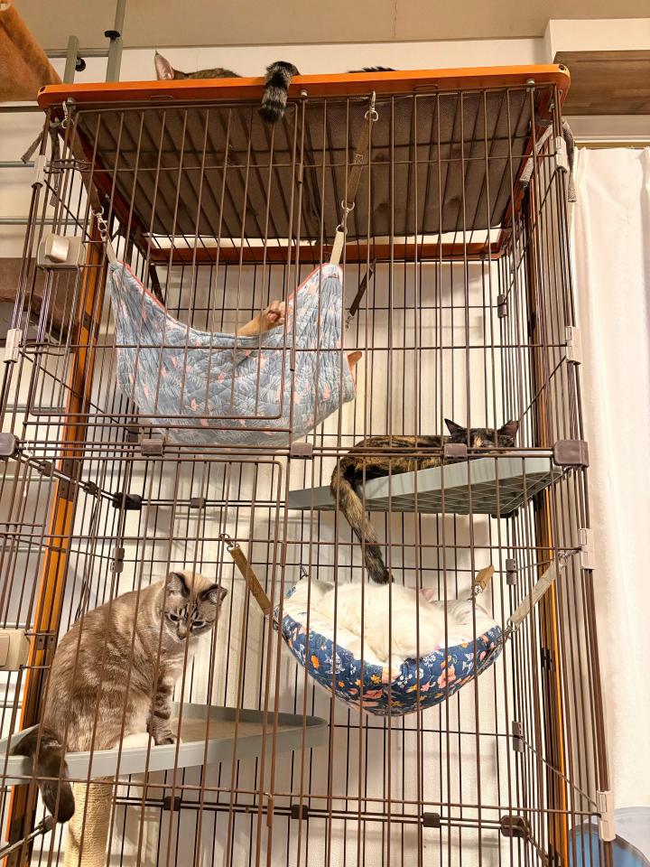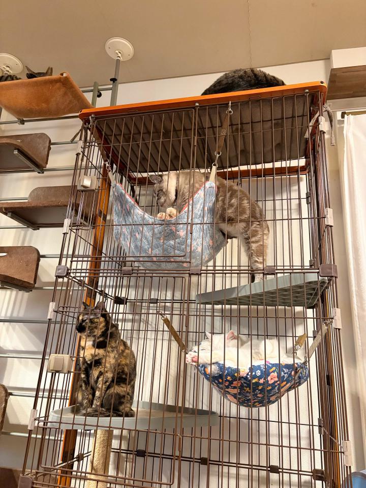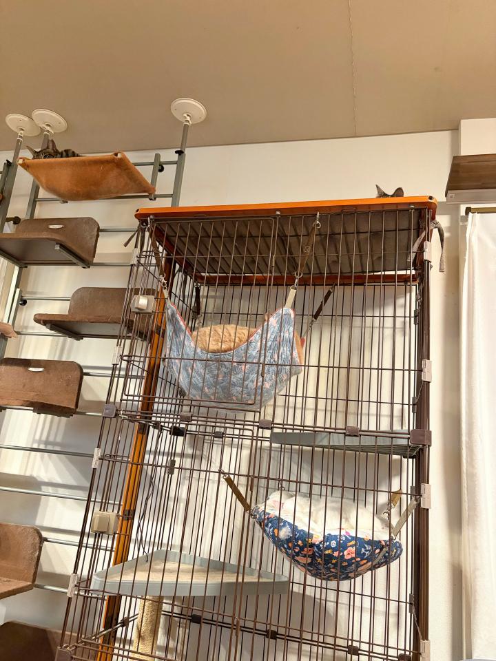 つくねがいなくなって、いつの間にかいとちゃんがキャットタワーの天辺のハンモックに収まっている