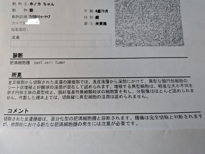 腫瘍は完全切除と考えられるとのことで、ほっ。