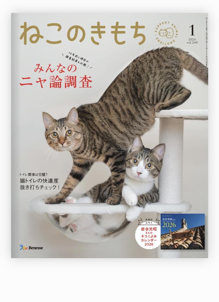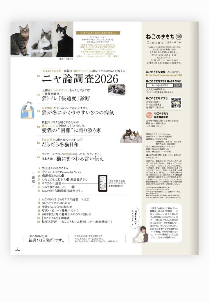 我が家のニャンズがねこのきもち1月号の表紙に!😆サイトのあちこちに載ってて期間限定とはいえ嬉しい〜