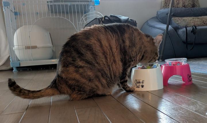 帰宅後、すぐにご飯をあげました。お腹すいてたね。