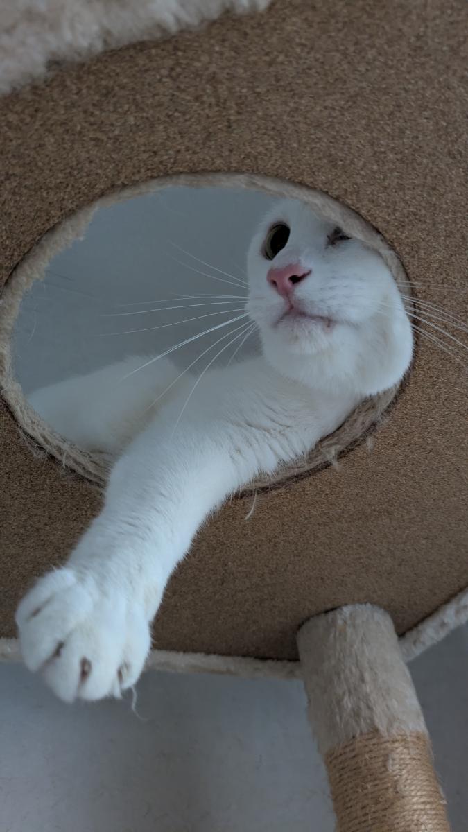 昨晩、ちっさめのキャットタワーにちーちゃんが座ってたので、抱っこして、戻す、抱っこして、戻す…って繰り返して遊んでたら、おもいっ!!きり、鼻の周辺を噛まれました🥲痛すぎて泣いた。引っ掻き傷が…