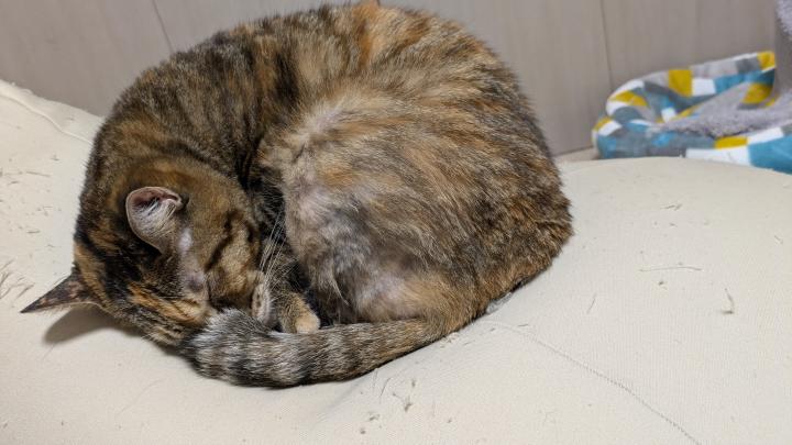 人をダメにするやつに気づいたら姫ちゃん。昨晩、この上で丸くなってました。
