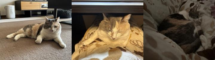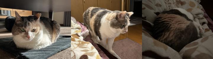 帰宅を出迎えなかったり、撫でられたり、ふみふみしたり。