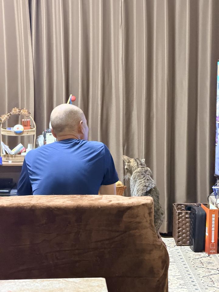 こうちゃんはお父ちゃんが大好きで、いつもお父ちゃんの側に座りお父ちゃんから撫でてくれるのを待ってます♪