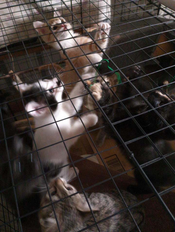 母猫(ミケちゃん)が声を聞いて止めに入ったり、こちらはその声で驚いてあたふたしたり。