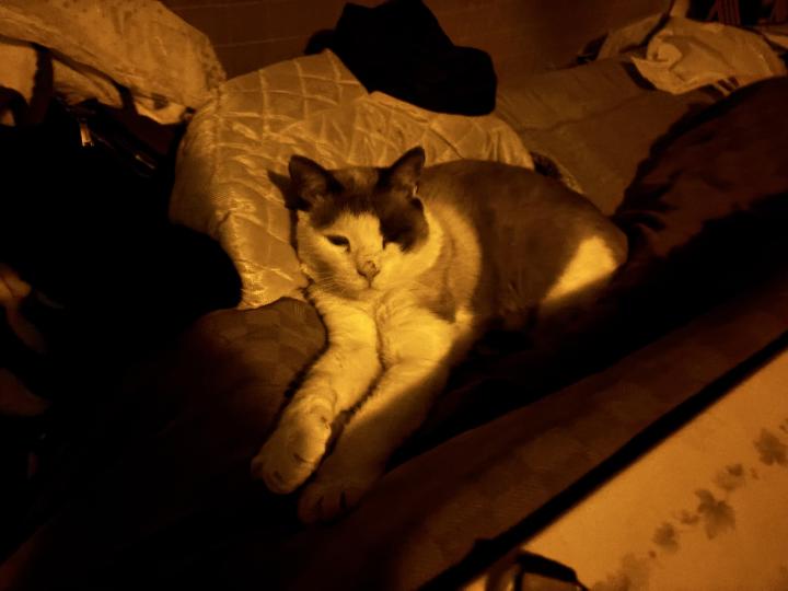 暗くなってから家に戻って、いつものようにオチリトントンしてもらう白。