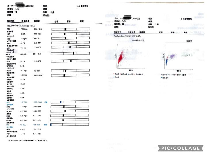 *血小板数値の低いのは検査の処理都合で心配なしとの事