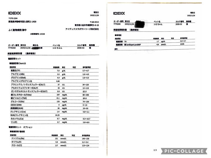 本日、健診結果が届きました。