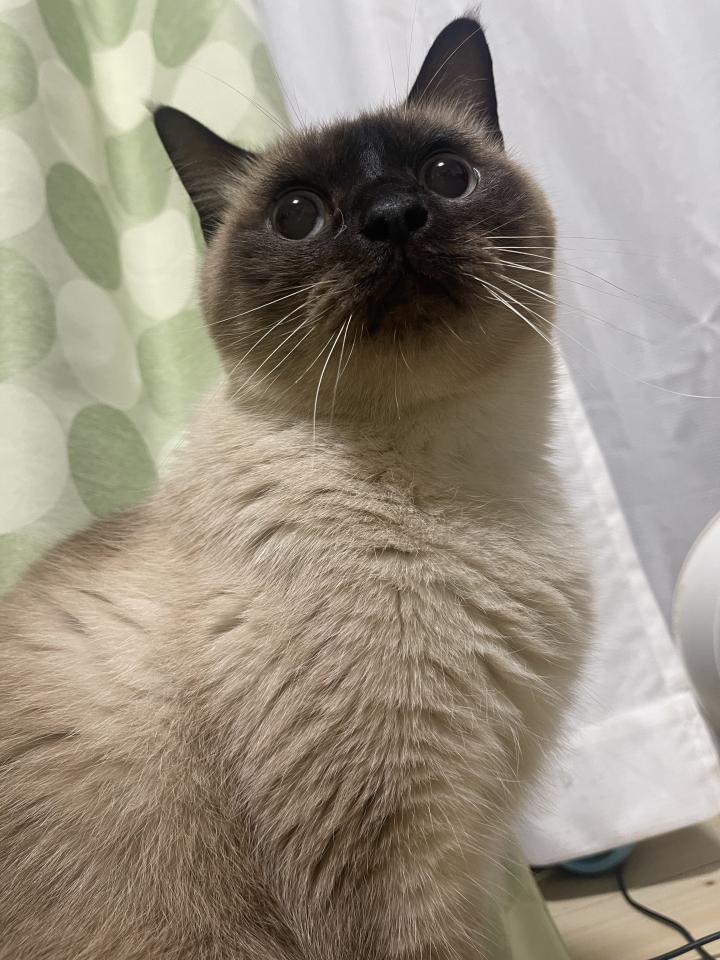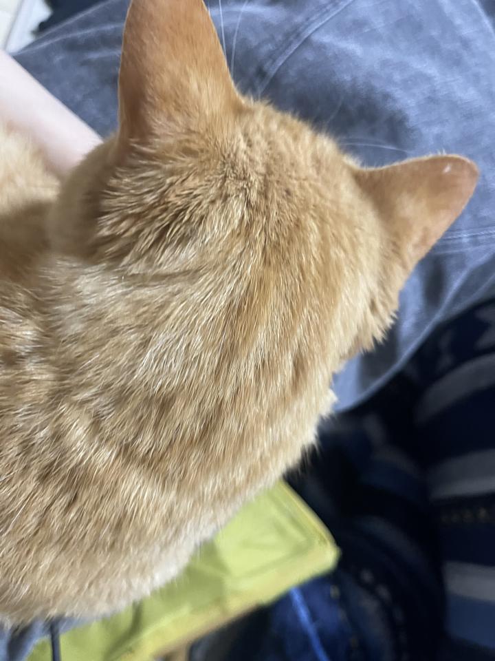 今日は保護猫様は私のお膝より私の口周りをペロンペロンとされてました。