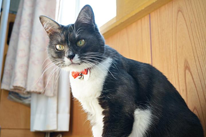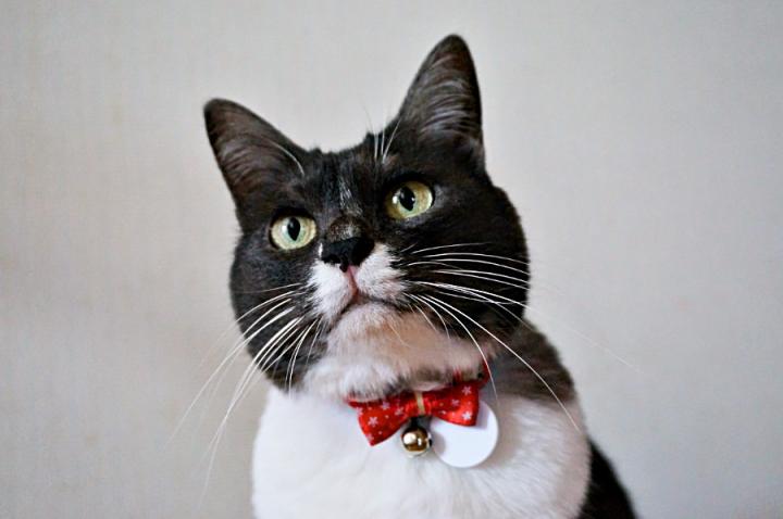 首輪の赤いリボンと鼻の下と口元の白いリボン模様が紅白なのがめでたい感じで良かったのかしら?🤭