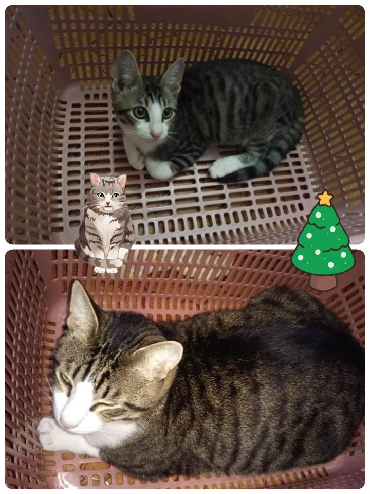 子猫の時と、成猫になり最近の写真です今も元気いっぱいです。🐈️✨️