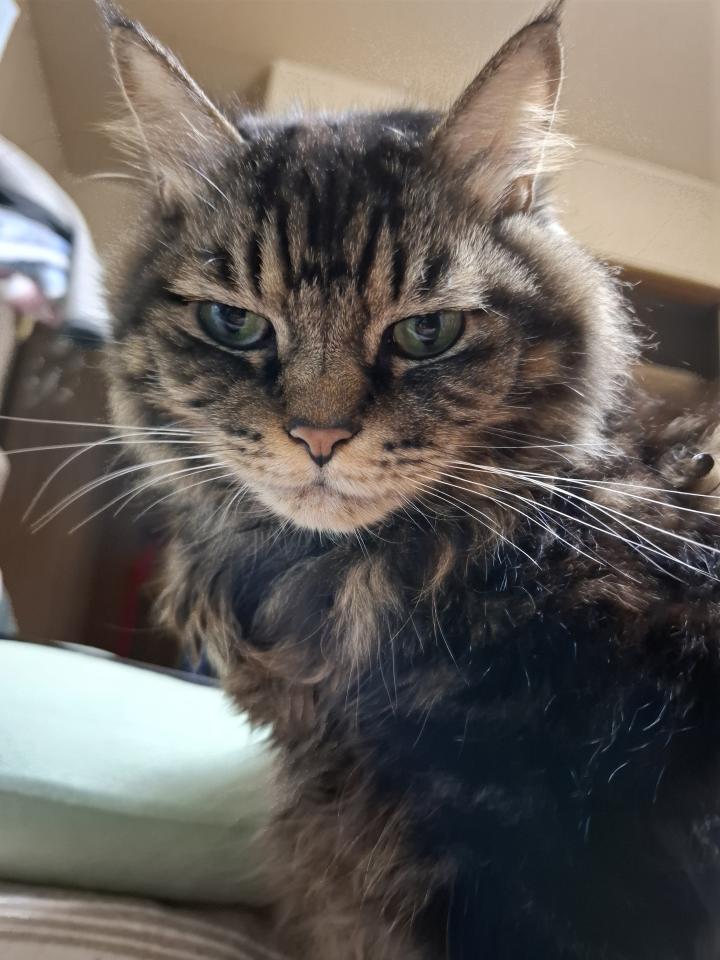 我が家のキジトラきなこさん、今月で(元野良猫なので誕生日は推定です)10歳になります🐱