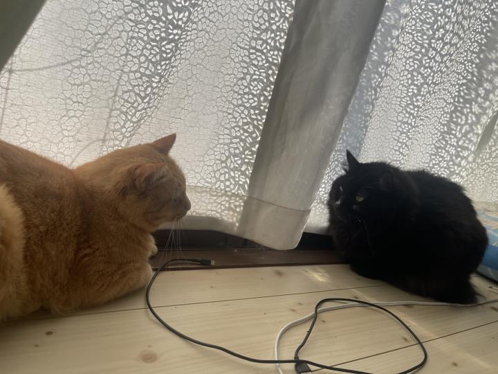 暴れすぎて周りが吹っ飛びましたが高虎さんと保護猫さんが出会った。