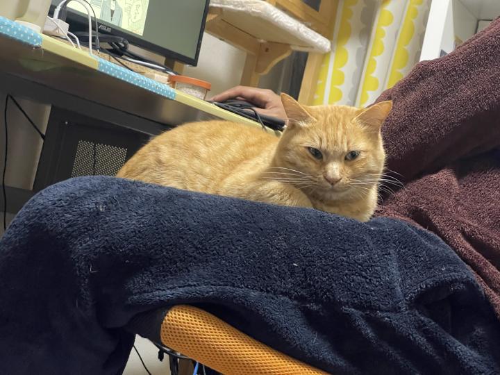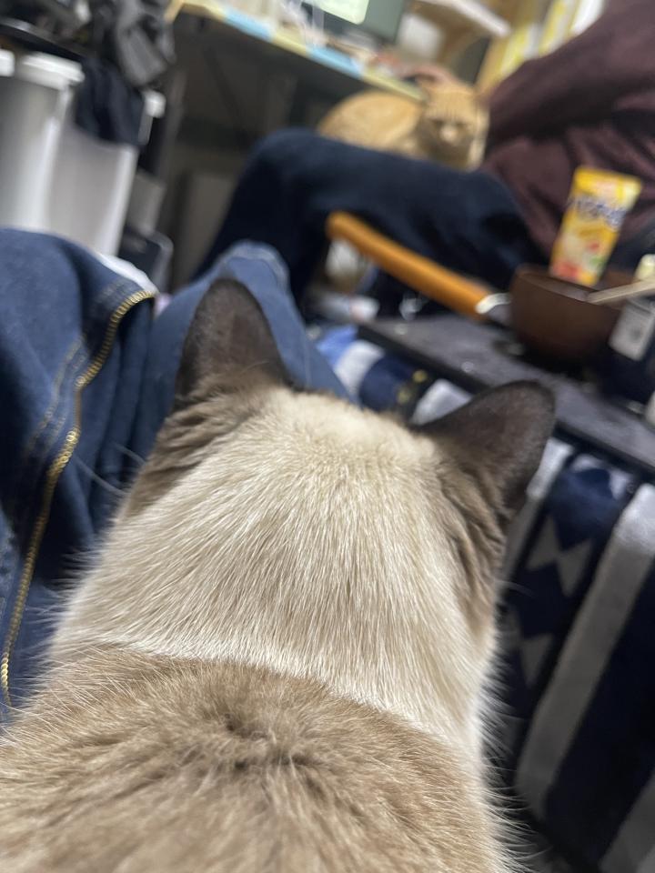 大福にお膝を明け渡したら相方に行った茶太郎。