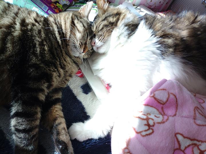 ここあくんがいました✨ 男の子女の子の兄弟を引き取り育てています♪ 男の子は甘えん坊で、猫はお腹触るの嫌がるなんて聞いたことあるけど、二人ともお腹触ってほしそうにして、撫でれば気持ち良さそうにして...