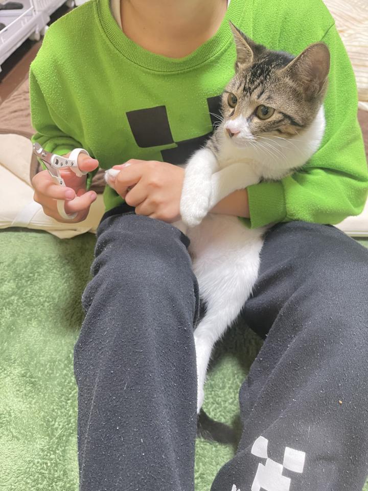 ツナマヨも慣れてきたのか、爪切り中も大人しくしてます☺️