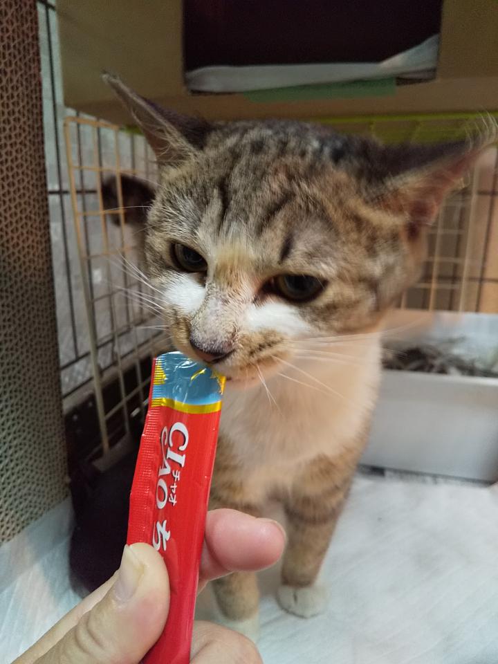 投薬後はもちろんちゅ~るのご褒美。