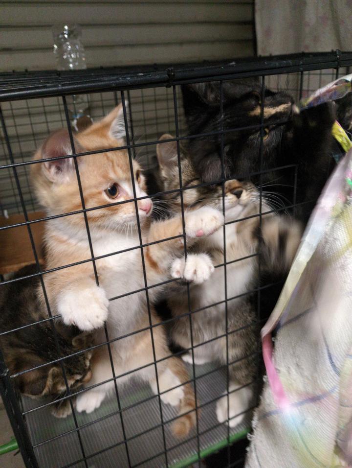 子猫たちをゲージから解き放ち、私が食事の用意をするんですが、クロマメは一生懸命駆け回ってしはらくすると、お腹が空いたのか自分でゲージに戻ってご飯を一人食べていました。コウとよく似た食いしん坊のオーラを感じます。