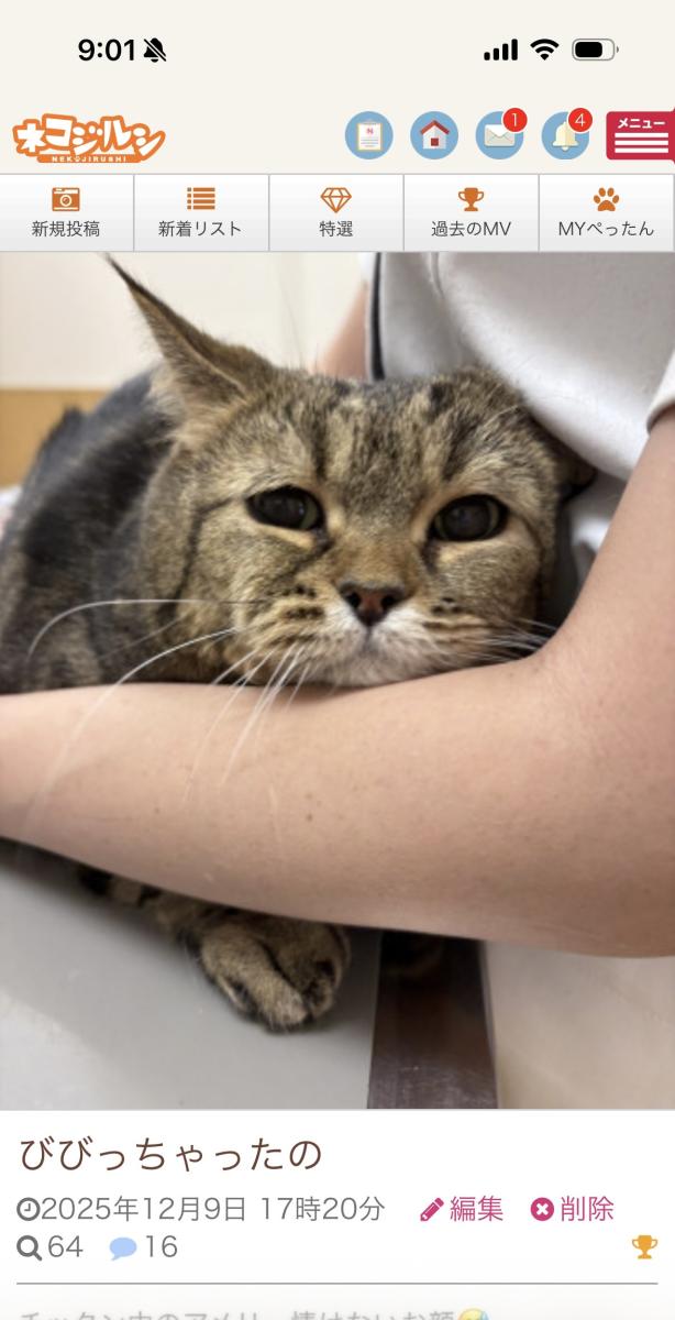 朝、ネコジを開いたらメッセージがたくさん入っていてアメちゃんのネコ写が