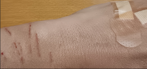 やられました。猫には第2の武器前脚、第3の武器後脚があるのですね。