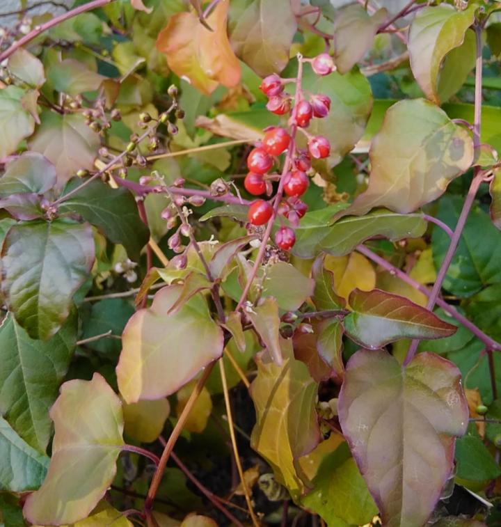 ジュズサンゴです。北米原産、ジュズサンゴ科の多年草です。低温には弱いため一年草