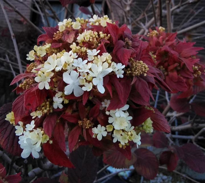 ビバーナムの一種です。ガマズミやオオデマリの仲間ですが、種名は判りません。