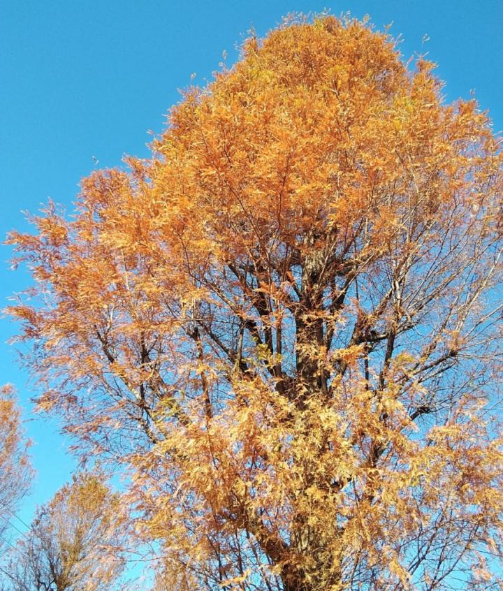 メタセコイアです。小さな運動公園に10本ほど植えられいます。ほとんどの木は落葉して