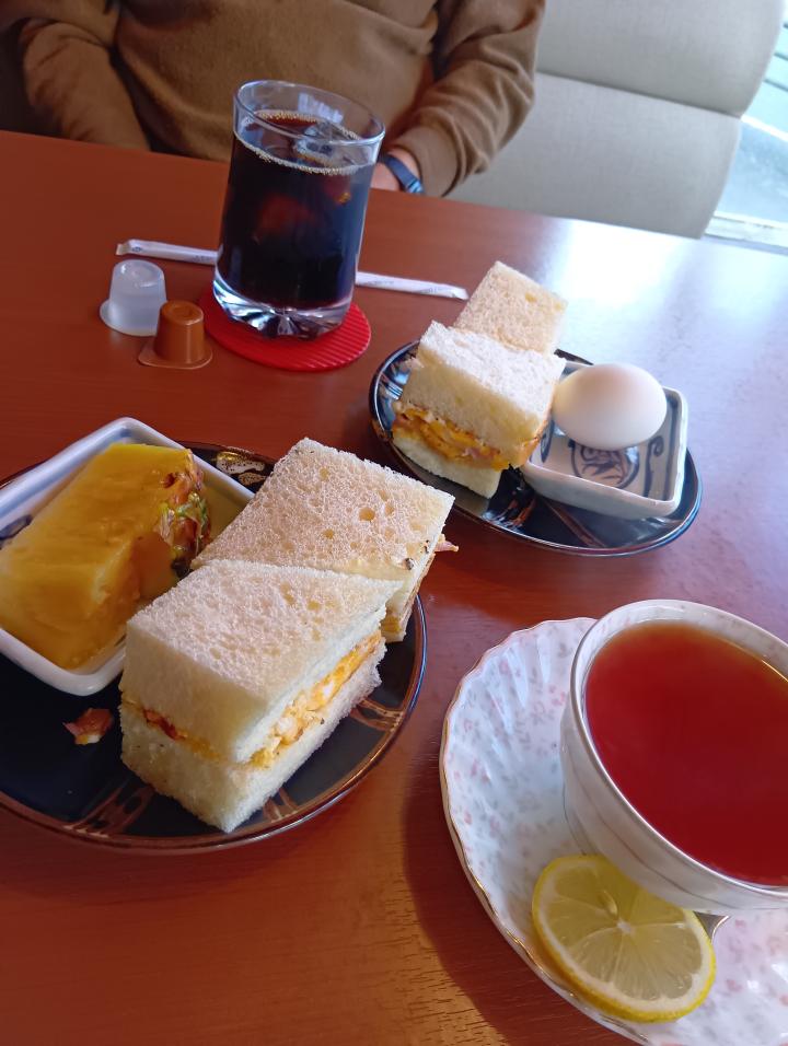 モーニングは飲み物の値段だけで、サンドイッチorトースト、卵orフルーツを選べます