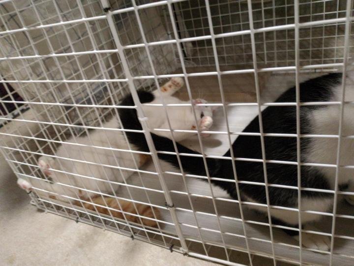 今日も我が道。普通の子は捕まえるとあきらめておとなしくしてくれるんですが、フーは身をよじって逃げようとします。(嫌がっているというか、遊んでいる感じ?)