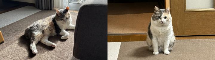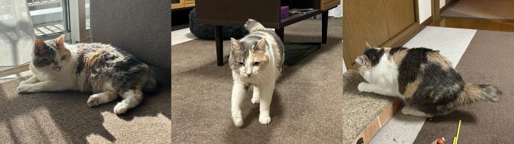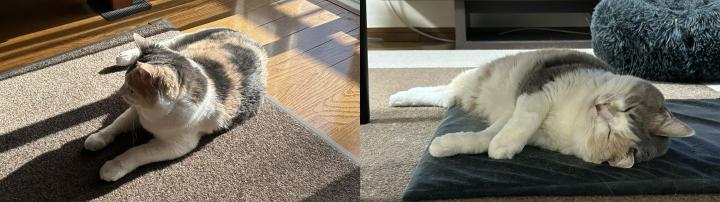 ひなたぼっこしたり、ホットカーペットで寝てたり。