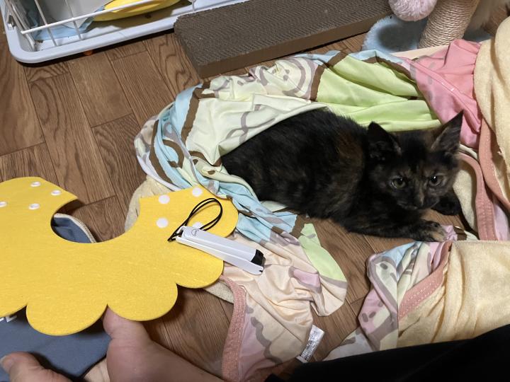 病児子猫保育園に入園して2週間程のサビ猫シエルちゃん。