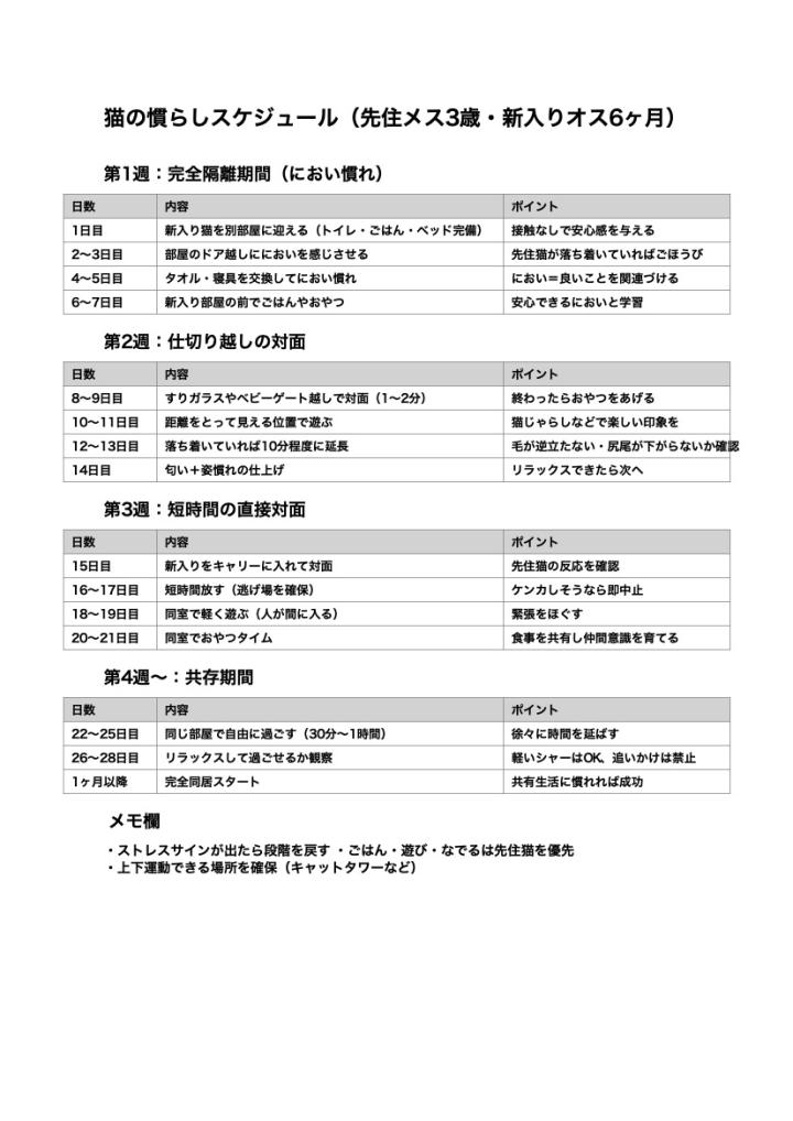 猫の慣らしスケージュールを参考に、