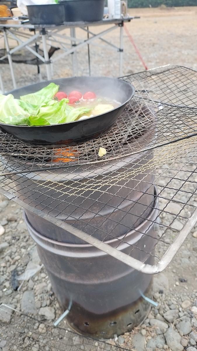 今回は手持ちの煙突もペール缶の下から設置しました。