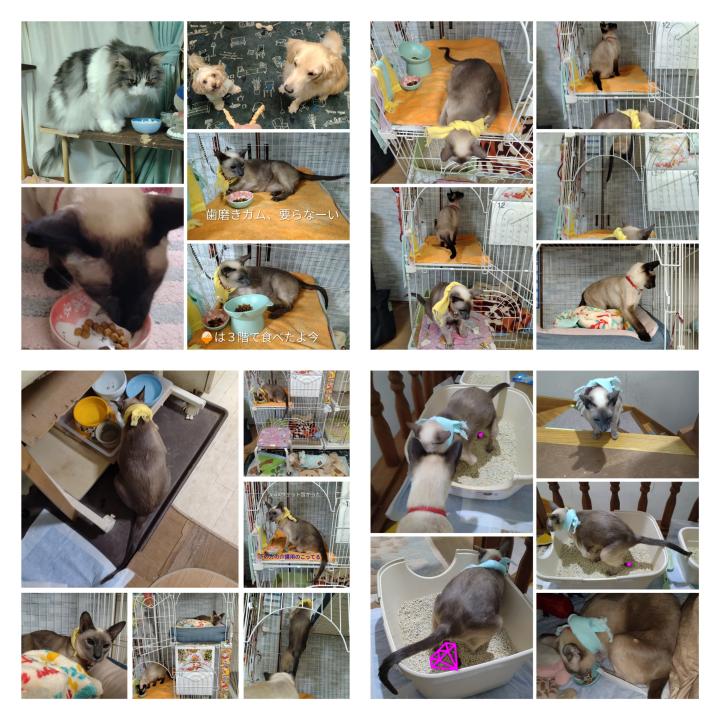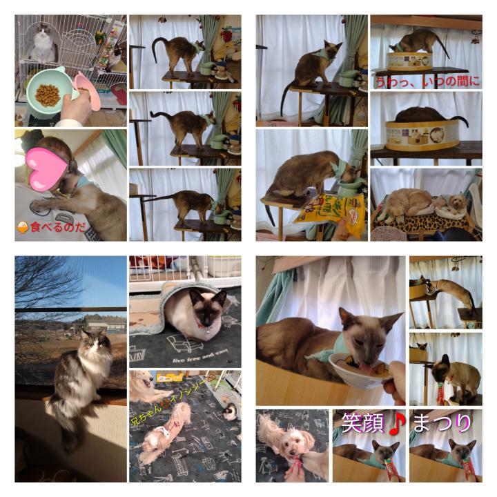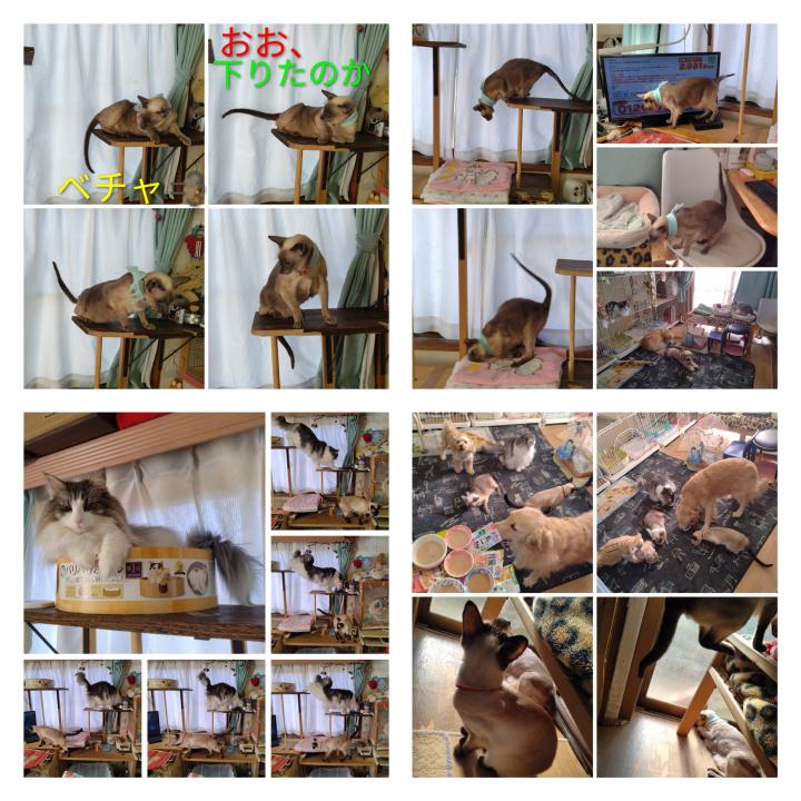 😻、母ちゃんが抱っこで下ろして2段めで食べる