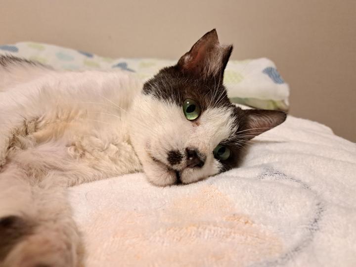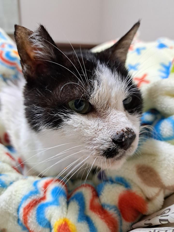 劣悪な環境での生活が続き、ノミアレルギーにもなり、やっと助け出されたと思ったらエイズで口内炎、真菌も発症し、ボスの猫生はつらいことの連続です。