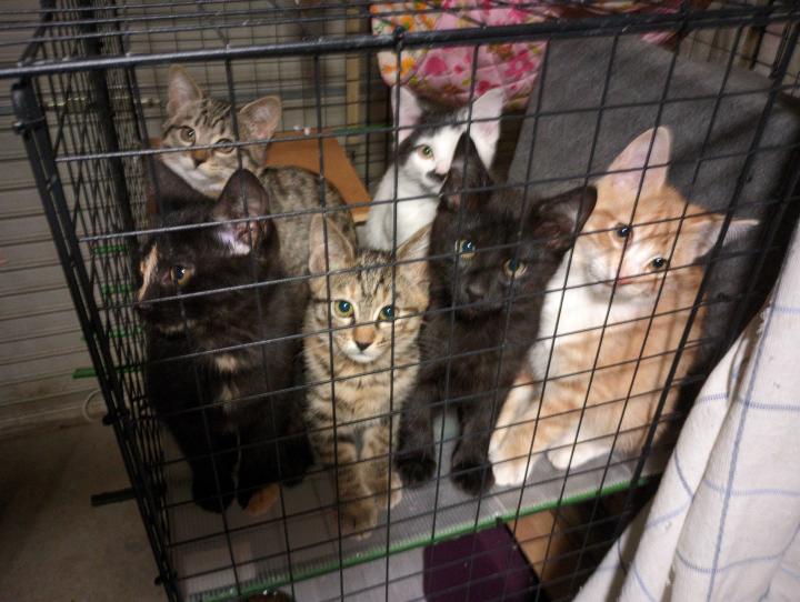 子猫たちをゲージから出して、戻す際に玩具を使って集めようとしましたが、私が「ご飯だよー」と呼びかけるとマーだけ尻尾を上げて近くに来てくれました。玩具も持っていないのに。