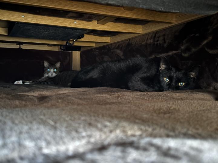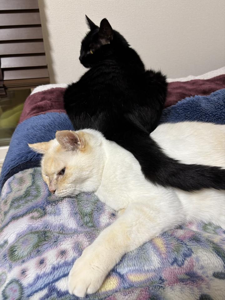 さすが寒さにめっぽう弱い男、くろ。奥は颯士郎。