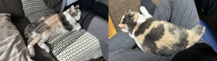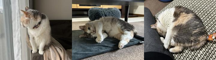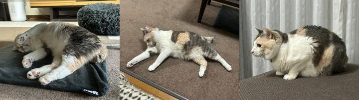 窓の外を眺めたり、ホットカーペットでくつろいだり、横で寝てたり。