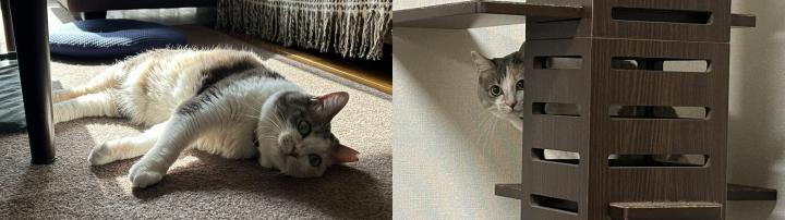 ひなたぼっこしたり、こちらをタワーから窺ったり。