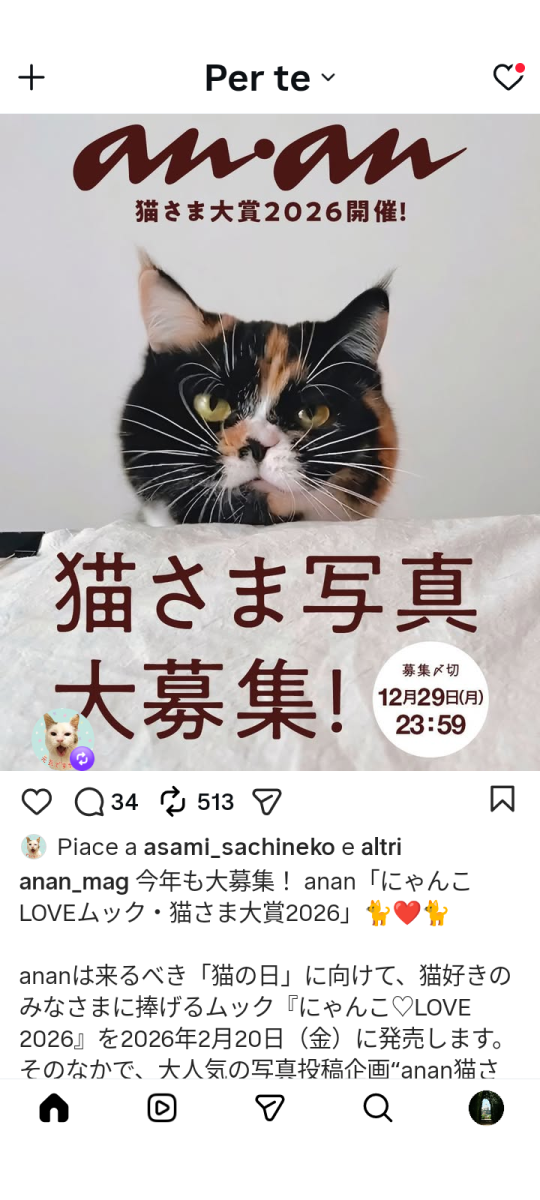 an・anが、猫の日に向けての雑誌用お猫様を募集しています。