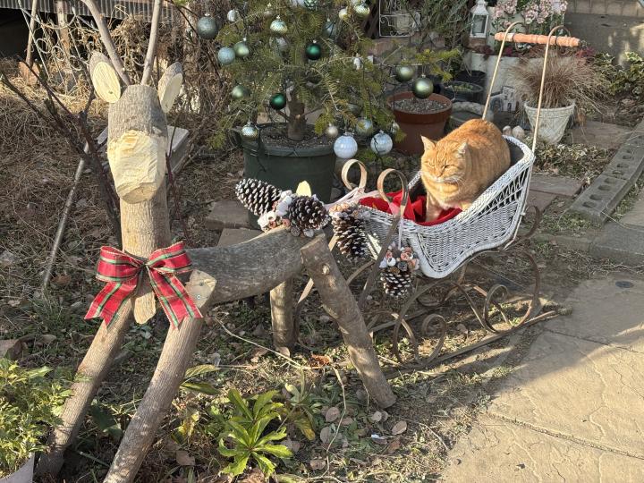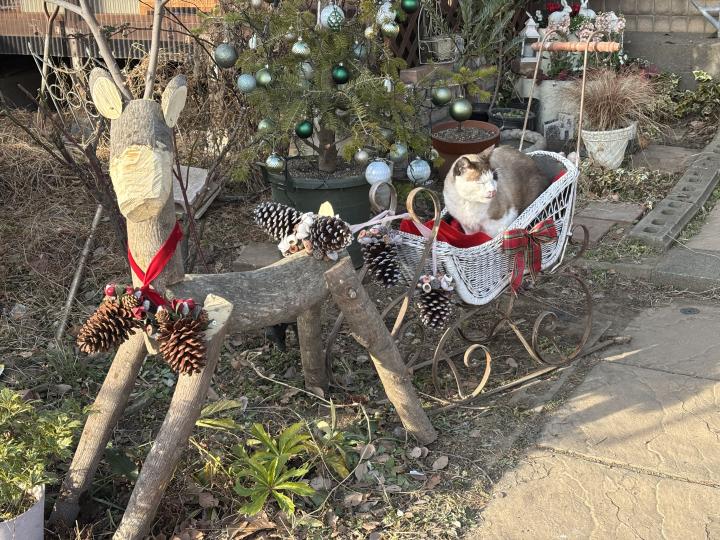 さっそく飾り付けて、ソリも引っ張り出して、みにゃ様を呼んで〜
